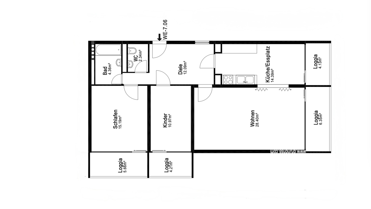 Wir haben die Wohnfläche durch Ansicht der Pläne über einen spezialisierten, externen Anbieter Wohnflächenberechnung überprüfen lassen. Wir übernehmen keine Haftung für Angaben Dritter.