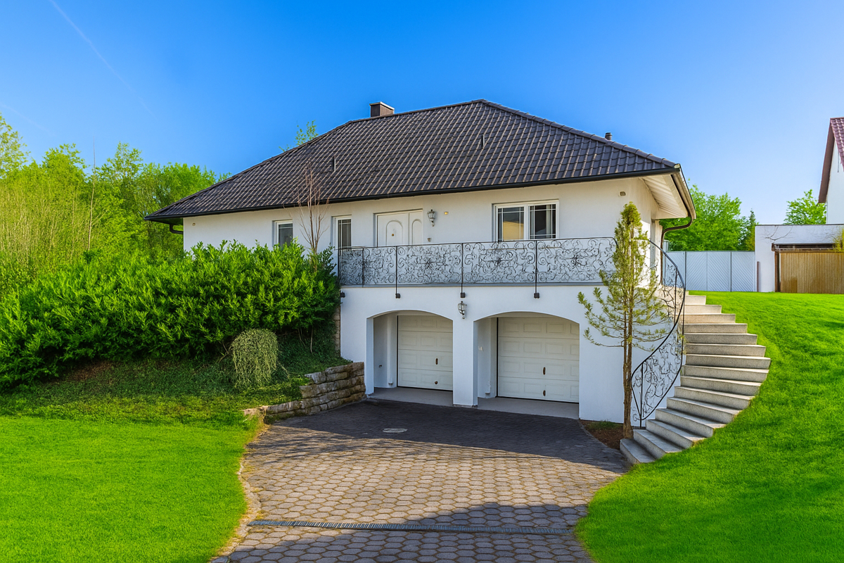 Ein weiteres Highlight sind die zwei Garagen im Untergeschoss, die nicht nur ausreichend Stellfläche für Ihre Fahrzeuge bieten, sondern auch einen direkten Zugang zum Keller ermöglichen – ideal für eine bequeme Erreichbarkeit des Hauses.