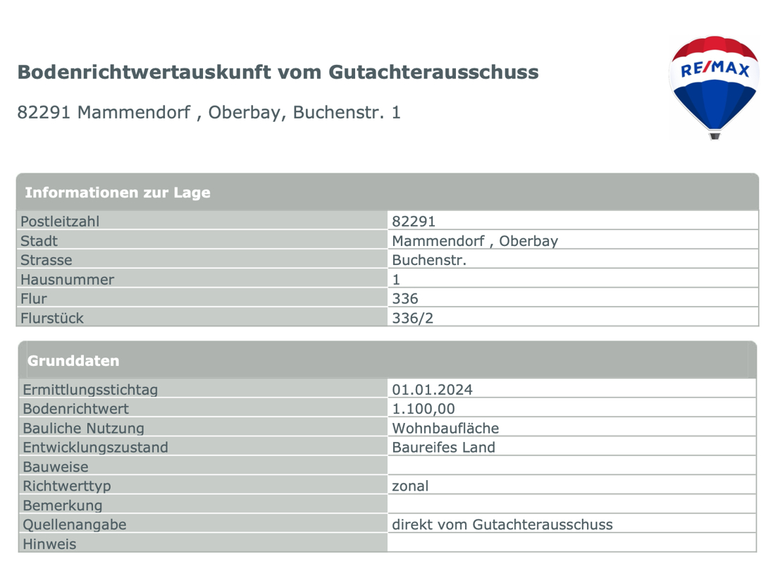 Alle Angaben sind ohne Gewähr und basieren ausschließlich auf Informationen, die uns von unseren Auftraggebern zur Verfügung gestellt wurden. Wir übernehmen keine Gewähr für die Vollständigkeit, Richtigkeit und Aktualität dieser Angaben. Die Angaben zu einer möglichen Bebauung müssen im Vorfeld durch einen Bauantrag geprüft und durch die jeweiligen Ämter der Gemeinde und Landratsamt genehmigt werden. Wir übernehmen für eine Genehmigung keine Gewähr. Die Grunderwerbssteuer, Notar- und Grundbuchkosten sind vom Käufer zu tragen.