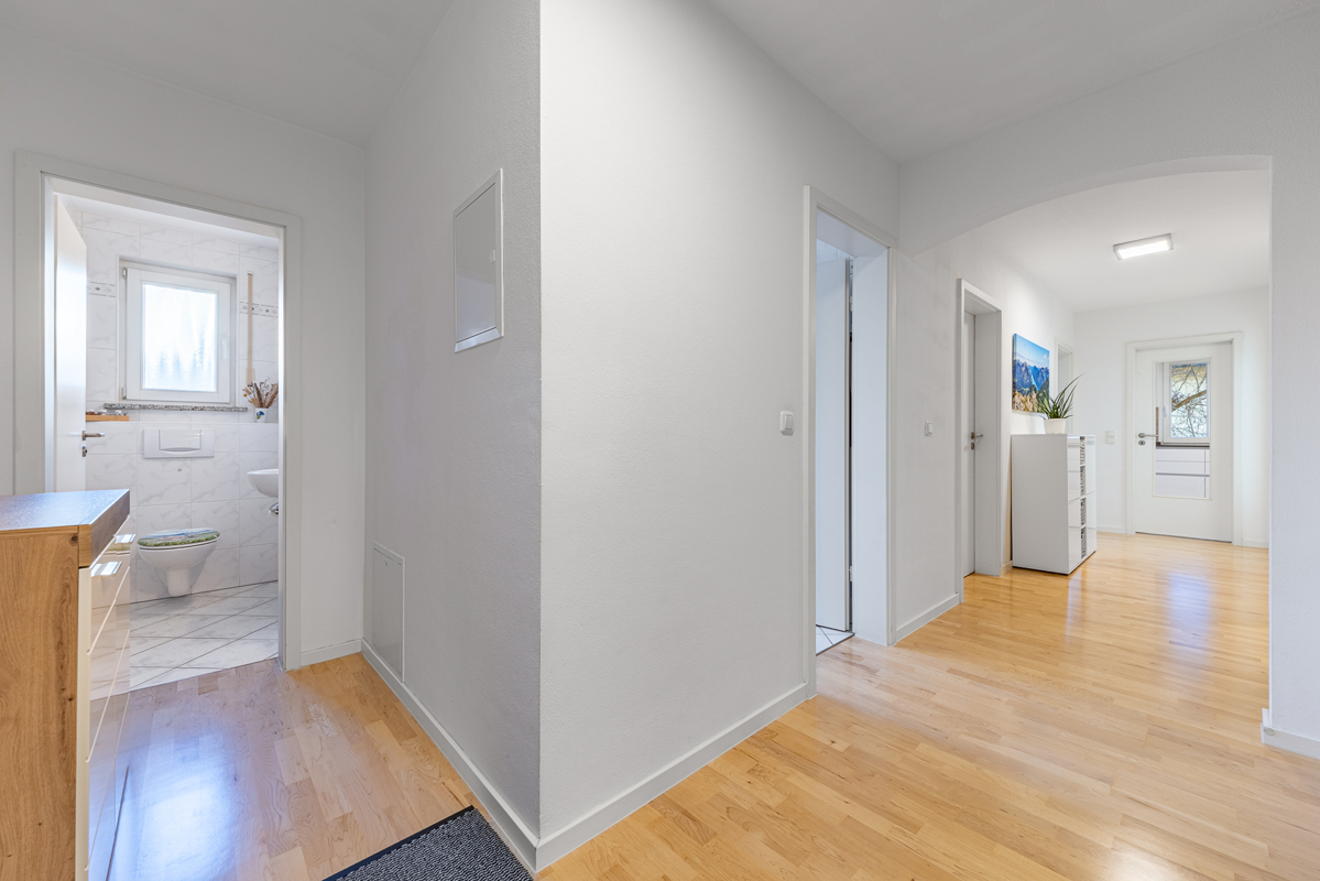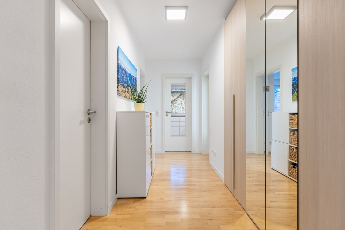 Durch die Lage in zweiter Reihe zur Rosenheimer Landstraße genießen Sie ein unerwartet ruhiges Wohnumfeld mit deutlich mehr Privatsphäre, als man an dieser Adresse vermuten würde.