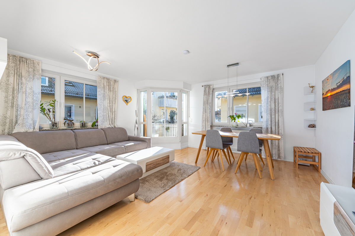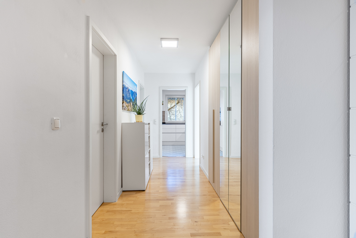 Die exklusive und sehr gepflegte 3-Zimmer-Wohnung empfängt Sie mit einem hellen und freundlichen Wohnambiente. Der großzügige Wohnbereich öffnet sich zur sonnigen Südterrasse, die wie ein kleiner privater Rückzugsort wirkt – ideal für den Kaffee am Morgen oder entspannte Abende im Freien.