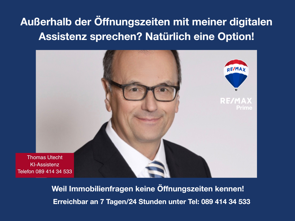 Doch wenn wir uns ausnahmsweise mal eine Mütze Schlaf gönnen, haben wir vorgesorgt: Unsere digitale Assistentin „Alexa Prime“ von RE/MAX Prime ist rund um die Uhr für Sie da. Sie können jederzeit anrufen – 24 Stunden am Tag, 7 Tage die Woche – und bekommen Antworten auf Ihre ersten Fragen oder können direkt einen Besichtigungstermin vereinbaren.